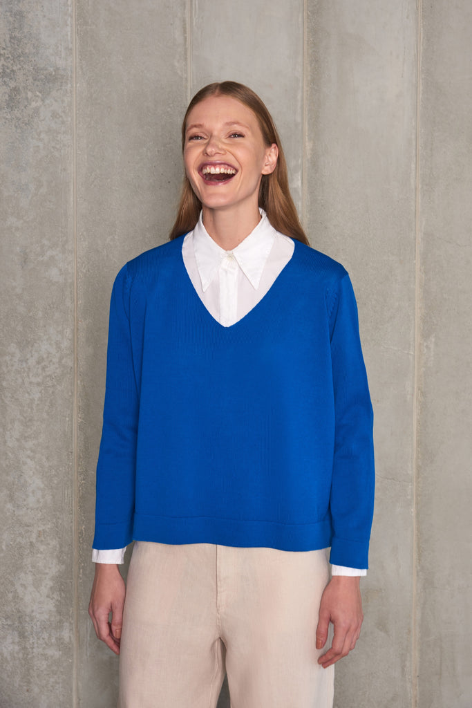 tricot 100% algodão egípcio. pull em meia malha, modelagem confortável, gola V, manga longa. tingimento especial, super macio, pode lavar... Saiba mais