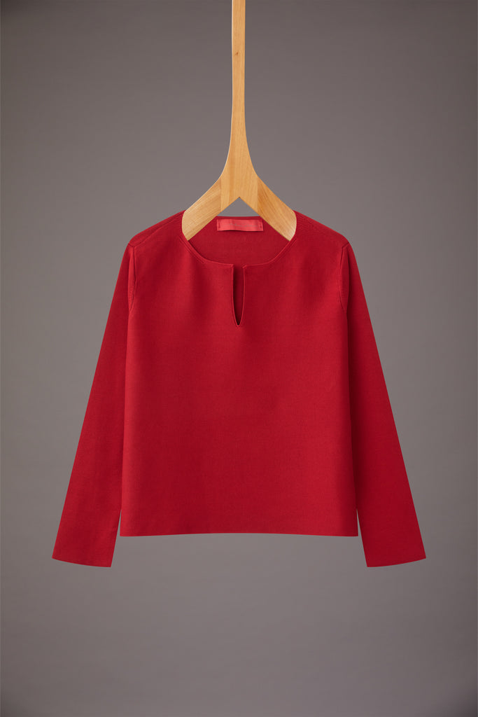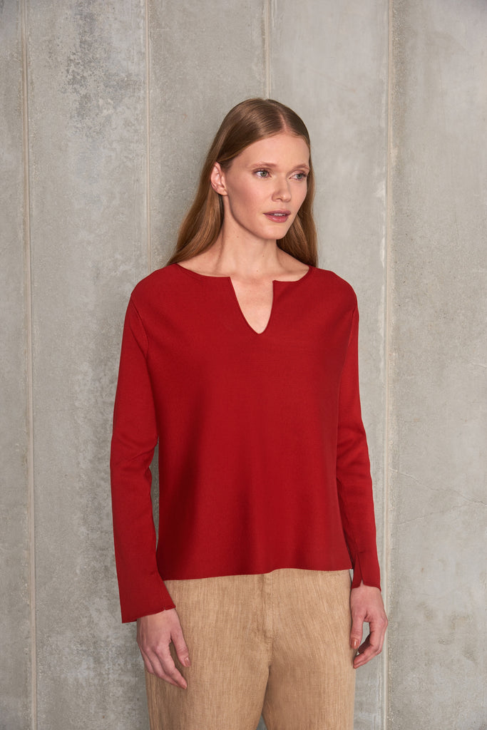 pull  em ponto invertido, modelagem clássica, gola careca com detalhe em V, manga longa.