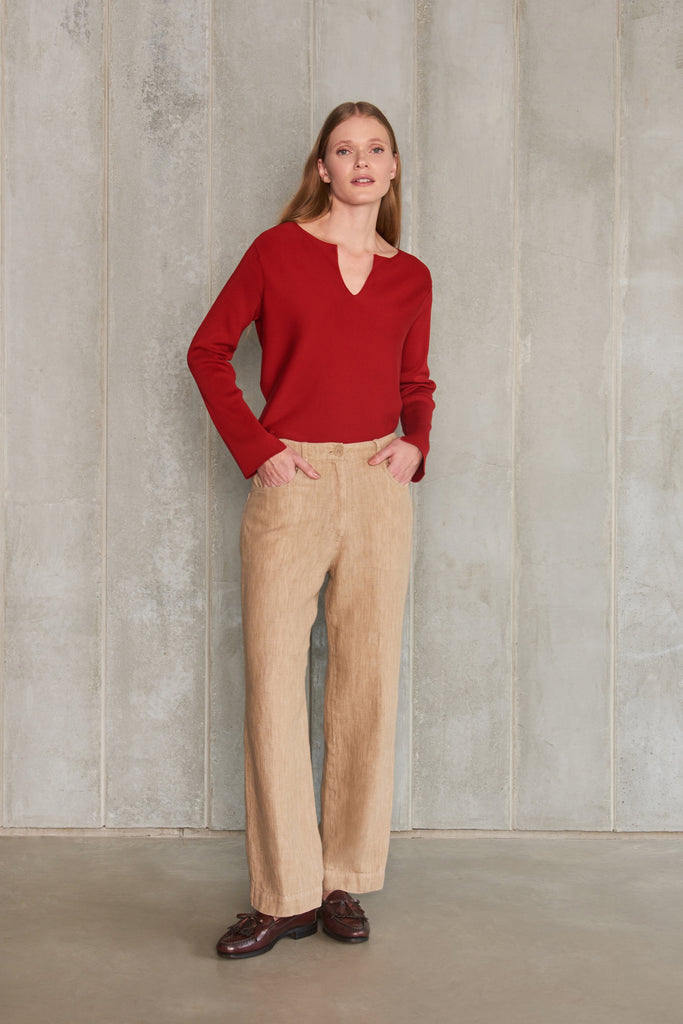 tricot 100% algodão egípcio pull  em ponto invertido, modelagem clássica, gola careca com detalhe em V, manga longa. Tingimento especial,... Saiba mais